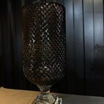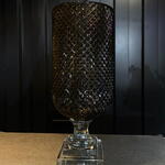 Un jarrón elegante y majestuoso: su cuerpo de vidrio oscuro con corte diamante brilla como una joya, mientras que su base transparente lo eleva con un aire de sofisticación. Una pieza que combina lujo y modernidad en un solo diseño deslumbrante.
