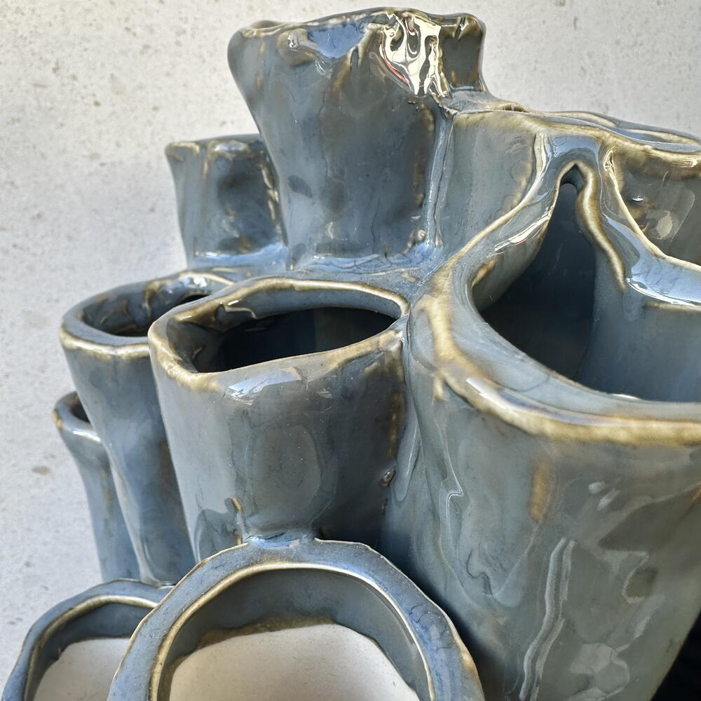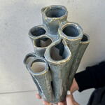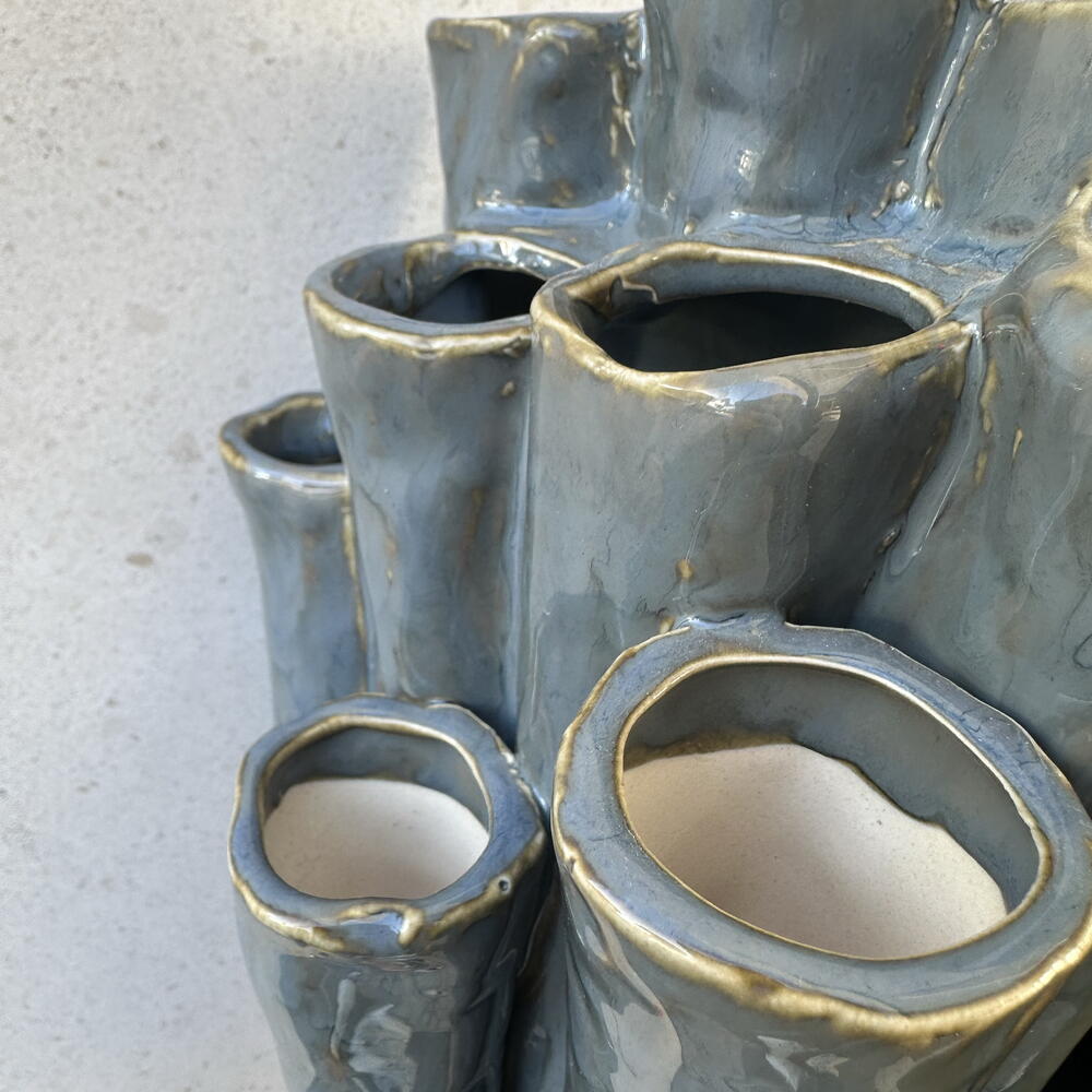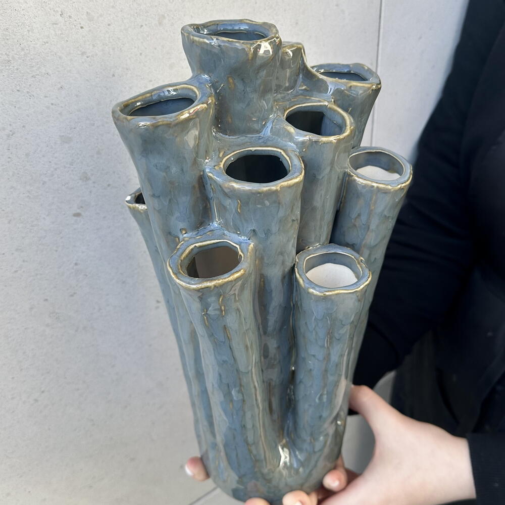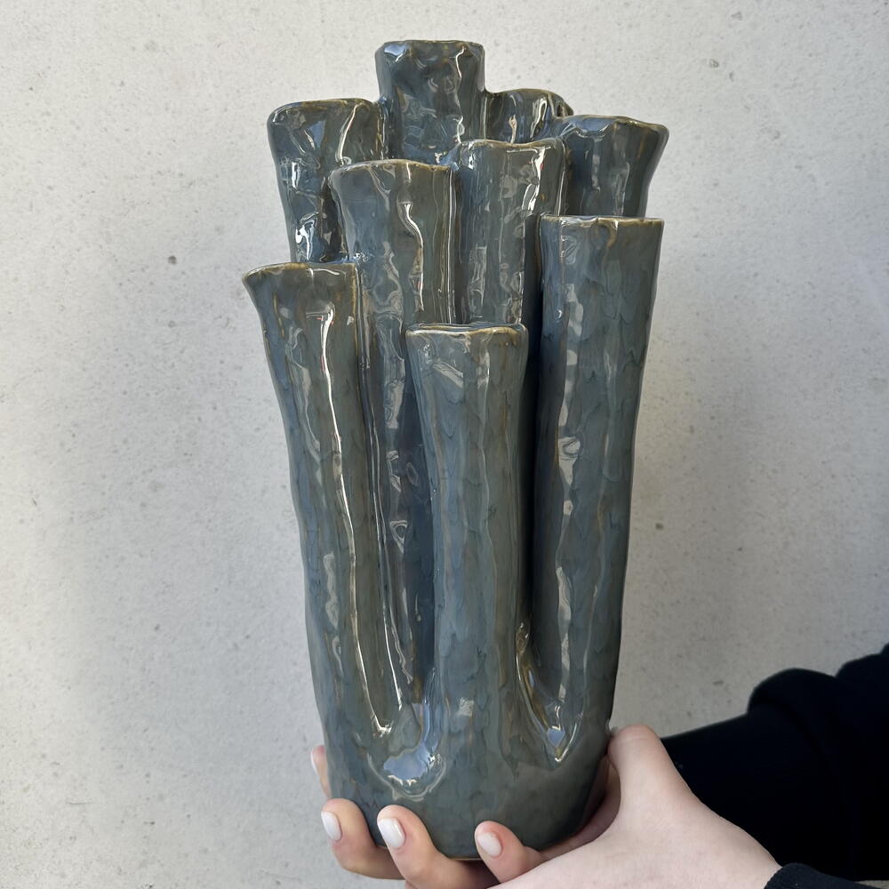 Un hermoso jarrón decorativo de autor, elegante y estilizado, diseñado para complementar cualquier espacio interior. Destaca por su forma armoniosa y su estética sofisticada, aportando un toque de personalidad y arte al ambiente.