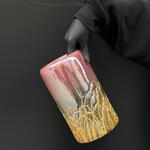 Jarrón artístico con degradado en tonos rosados y base decorada con líneas doradas en relieve que recuerdan a una cascada líquida. Una pieza moderna y expresiva que aporta calidez y carácter al espacio. ✨