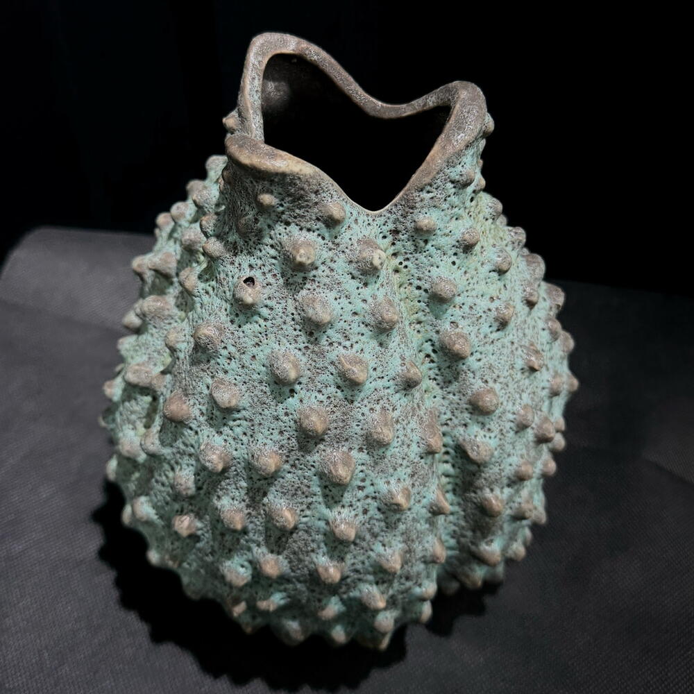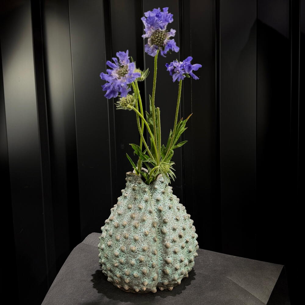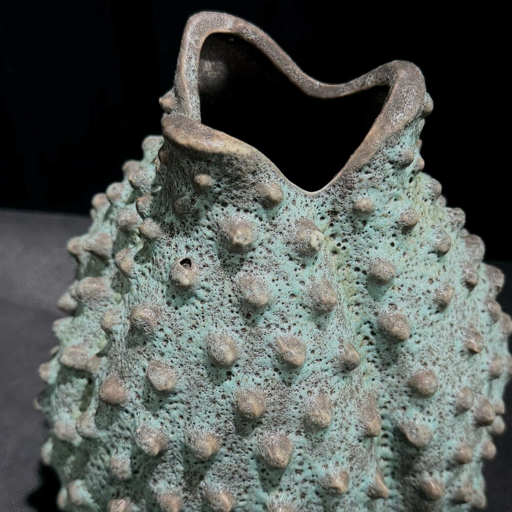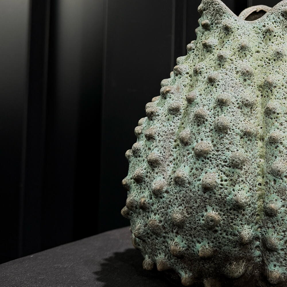 Jarrón decorativo de cerámica con textura escultural inspirada en corales marinos. Su acabado verde envejecido aporta un estilo natural y contemporáneo, ideal para espacios modernos y piezas florales minimalistas. Una pieza original y llamativa que destaca por su diseño artístico y su presencia única.