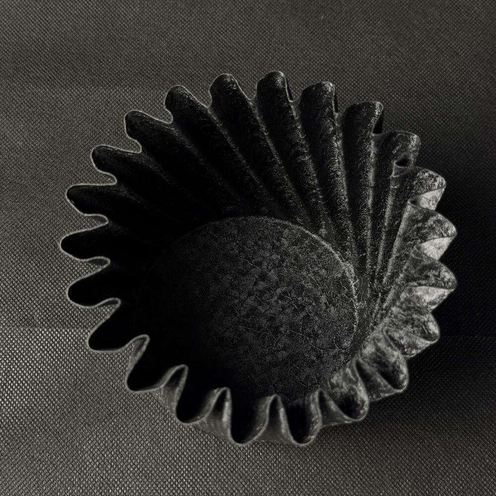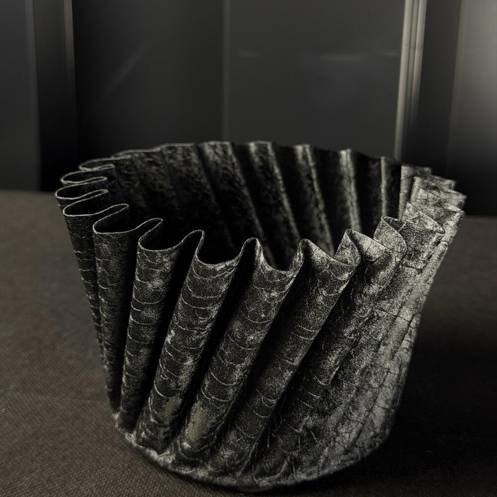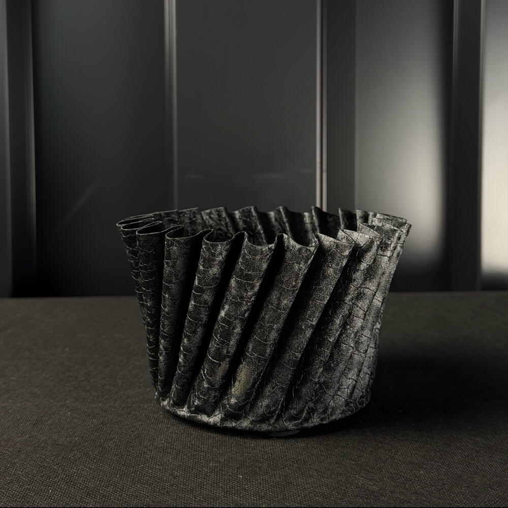 Maceta d12 metal negra mate con relieve ondulado de ARAIK GALSTYAN