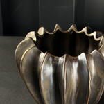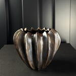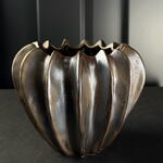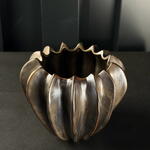 Jarrón de cerámica con acabado en tonos oscuros y detalles dorados, diseño orgánico y elegante, ideal para decoración interior y arreglos florales decorativos. a.966