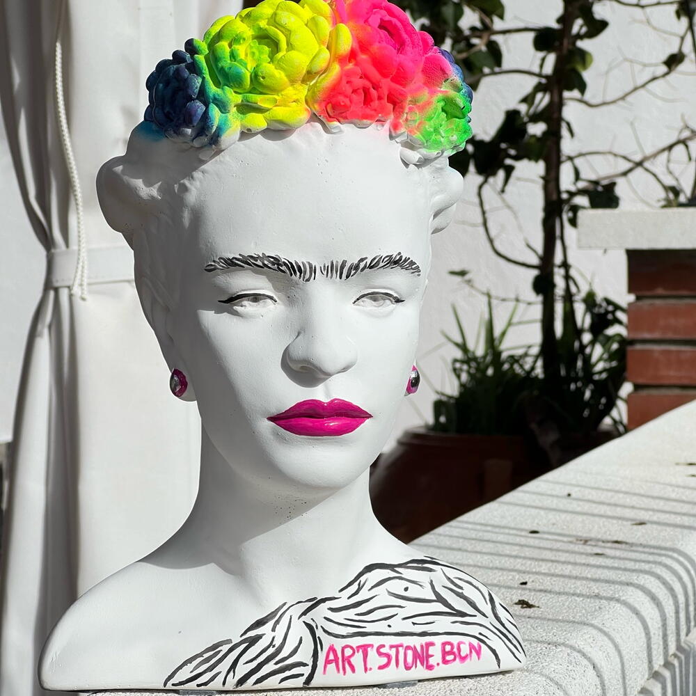 Maceta de yeso del busto de Frida se puede usar como: organizador de pinceles y suministros de oficina; jarrón de flores; maceta para plantas; elemento decorativo para su hogar/oficina/establecimiento/jardín/terraza. Decoración para el hogar, estatuilla, figura, busto de yeso. ¡Perfecto como regalo! Altura 25 cm, Dentro 10 x 10 cm