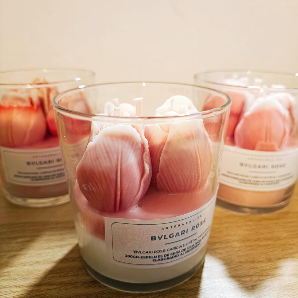 Nuestra vela artesanal no es solo un objeto de decoración; es una experiencia sensorial completa. Inspirada en la sofisticación de Bvlgari Rose, esta vela captura la esencia de un jardín de rosas en su máximo esplendor, combinando el lujo olfativo con la pureza de los materiales naturales. Lleva unos 200gr de cera aprox. Producto Vegano Cruelty-Free: Elaborada sin ningún componente de origen animal