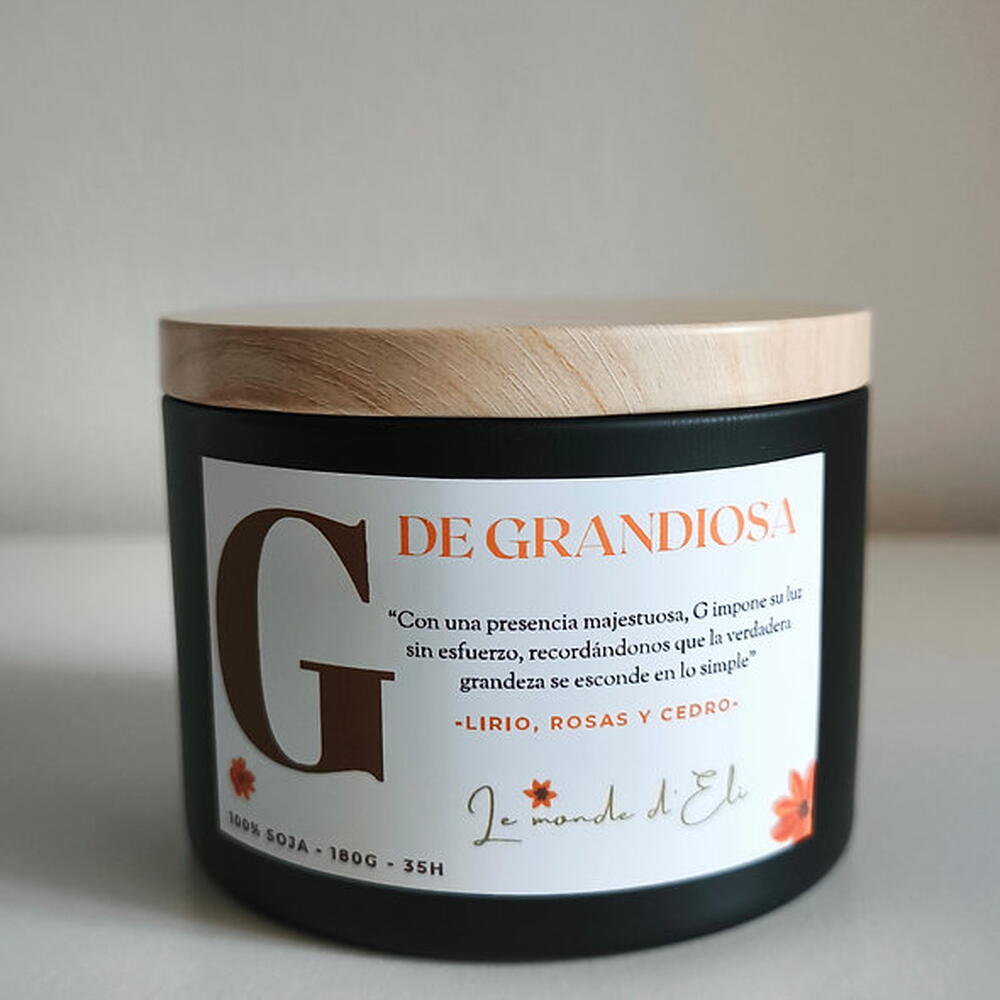 Vela aromática, G con una presencia majestuosa, impone su luz sin esfuerzo, recordándonos que la verdadera grandeza se esconde en los simple. Aroma: Lirio, rosas y cebro Peso total tamaño grande: 230g / Cera aprox.180g