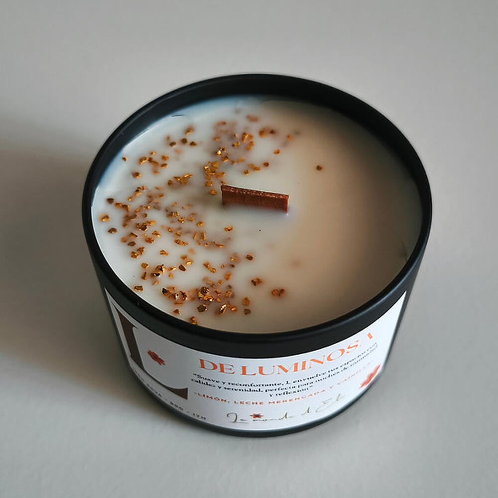 Vela aromática, L suave y reconfortante, envuelve tus espacios con calidez y serenidad, perfecta para noches de intimidad y reflexión. Aroma: Limón, leche merengada y vainilla Peso total tamaño pequeño: 130g / Cera aprox.90g