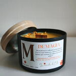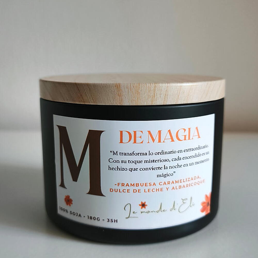 Vela aromática, M transforma lo ordinario en extraordinario. Con su toque misterioso, cada encendido es un hechizo que convierte la noche en un momento mágico. Aroma: Frambuesa caramelizada, dulce de leche y albaricoque Peso total tamaño grande: 230g / Cera aprox.180g