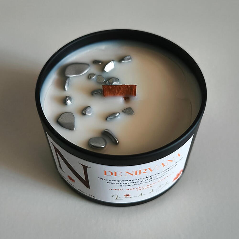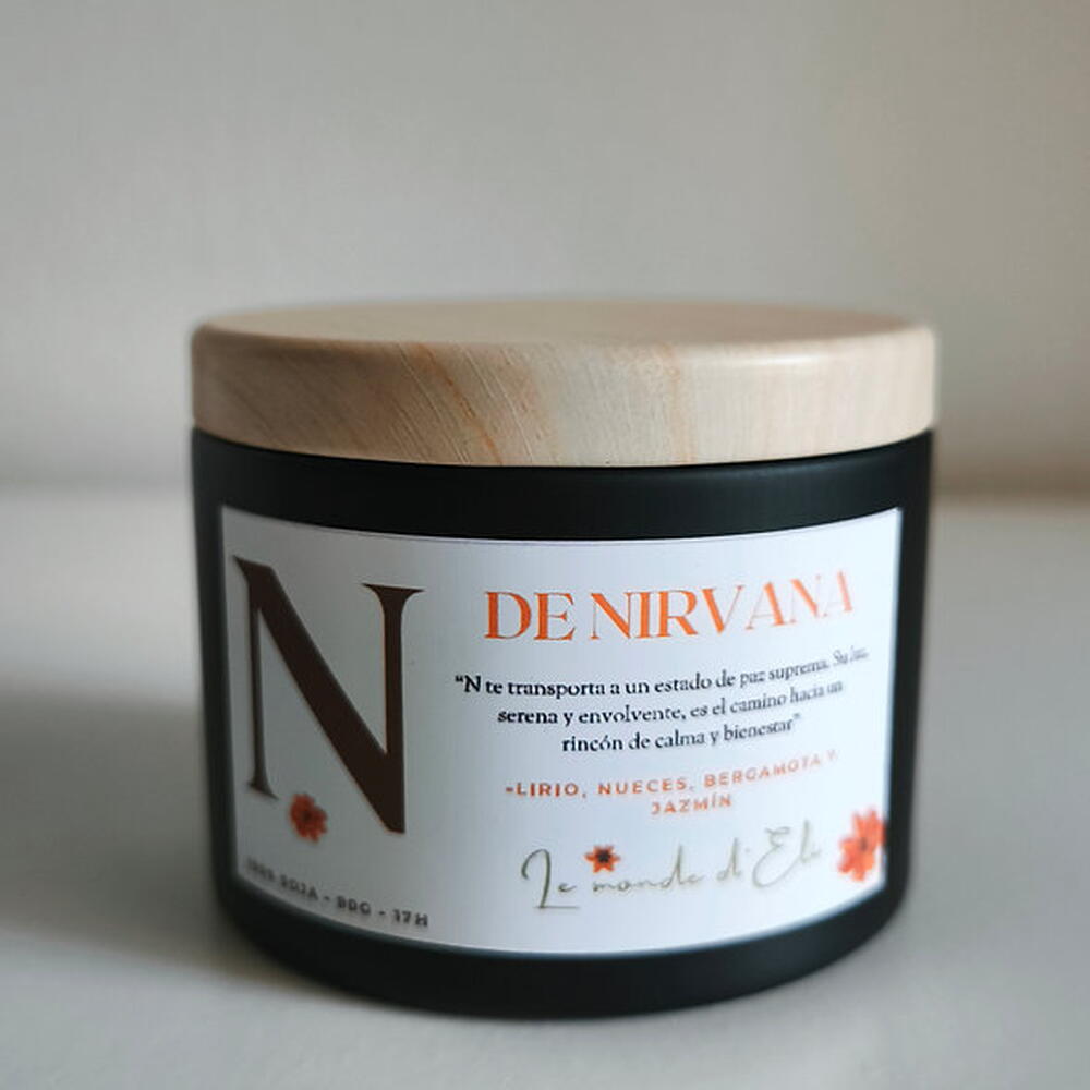 Vela aromática, N te transporta a un estado de paz suprema. Su luz, serena y envolvente, es el camino hacia un rincón de calma y bienestar. Aroma: Lirio, nueces, bergamota y jazmín Peso total tamaño pequeño: 130g / Cera aprox.90g