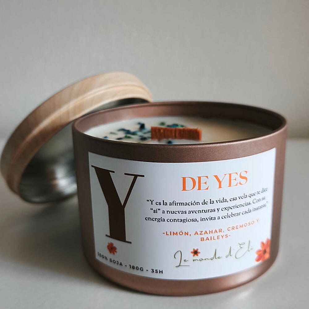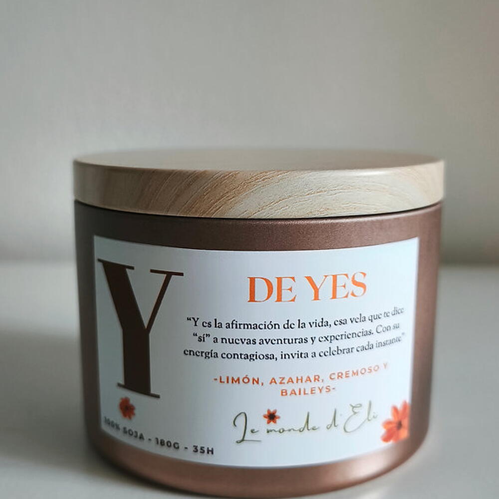 Vela aromática, Y es la afirmación de la vida, esa vela que te dice si a nuevas aventuras y experiencias. con su energía contagiosa, invita a celebrar cada instante. Aroma: Limón, azahar, cremoso y baileys Peso total tamaño grande: 230g / Cera aprox.180g