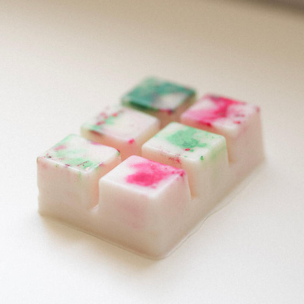 Packs de Wax melts , en formato cuadraditos. Cajita de 6 unidades. Realizados en cera de soja natural y con aromas naturales, para fundirlos en tu quemador. * Para fundir los wax melts necesitas un quemador de esencias. Como utilizarlo: Con mucho cuidado introduce una velita de té encendida en el hueco de abajo del quemador y un melt arriba, al momento notarás que empieza a derretirse aromatizando suavemente el ambiente. Cada melt tiene una duración aromática (más o menos 3-4 encendidos), cuando ya pierde su aroma es cuando debe cambiarse retirando la cera sobrante (con mucha precaución de no quemarnos).