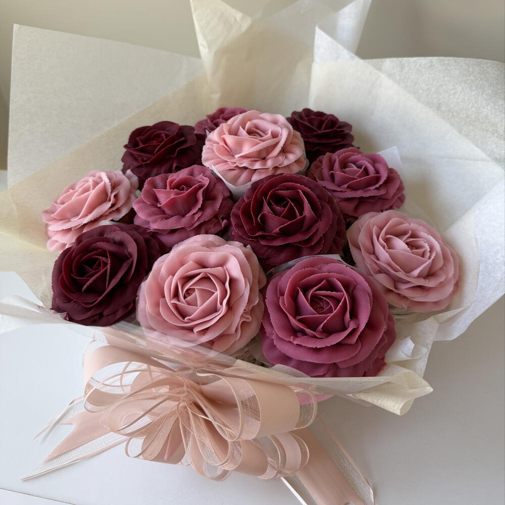 Nuestro icónico ramo de 12 cupcakes está diseñado para sorprender. Cada cupcake está decorado a mano en forma de rosa, creando un bouquet elegante y delicado que combina la belleza de las flores con el placer de un postre artesanal. Presentado en papel envolvente estilo floristería y acabado con un lazo satinado, este ramo en tonos rosas degradado es perfecto para cumpleaños, aniversarios, San Valentín, Día de la Madre o cualquier ocasión especial donde quieras regalar algo diferente. ✨ 12 cupcakes artesanales 🌹 Decoración floral hecha a mano 🎀 Presentación premium lista para regalar 💝 Personalizable en colores y sabores Un detalle que no se marchita… se disfruta.