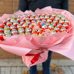 Un delicioso ramo de golosinas Kinder convertirá cualquier celebración en un evento inolvidable. Incluye 54 huevos de chocolate Kinder y 7 irresistibles Kinder Joy. Cada flor de chocolate en el ramo está impregnada de amor y cuidado, para regalarle momentos dulces y llenos de alegría. Este apetitoso ramo, sin duda, encantará a los amantes de Kinder y será el regalo perfecto para quienes merecen una atención especial.