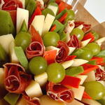 jamón serrano - 200 gr queso semicurado - 400 gr queso gouda pesto verde - 200 gr queso gouda pesto rojo - 200 gr uvas verde - 200 gr