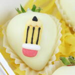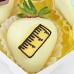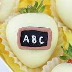 9 Fresas con chocolate blanco con azucar de la tematica escolar