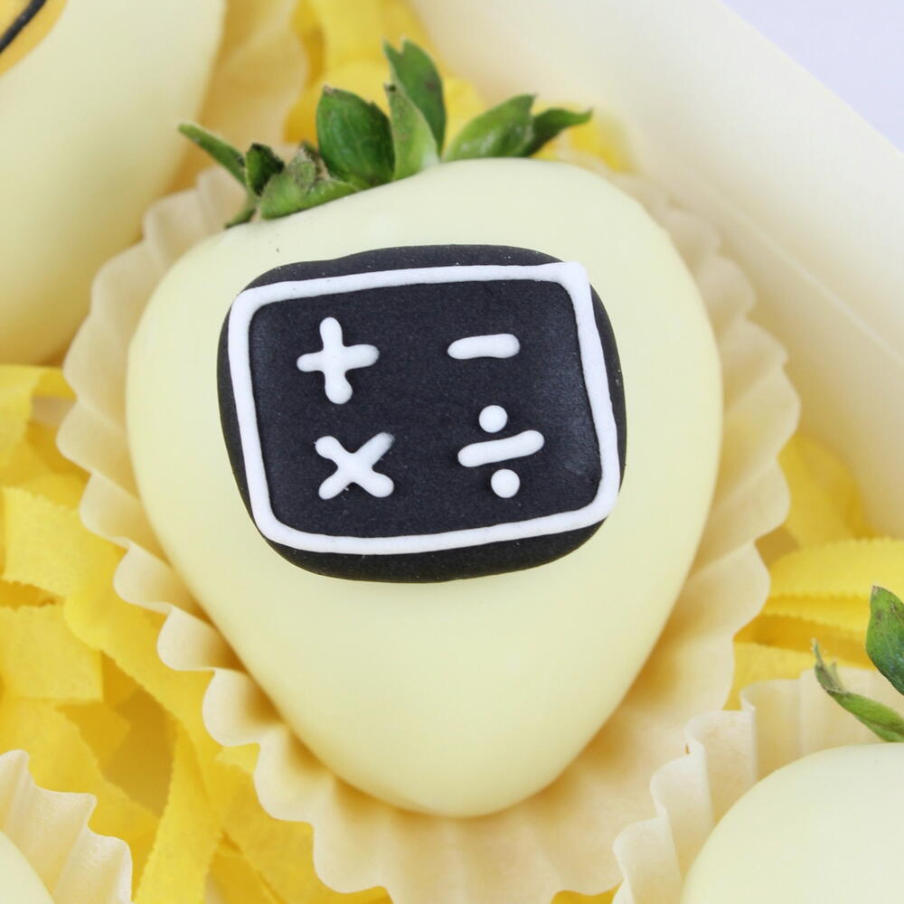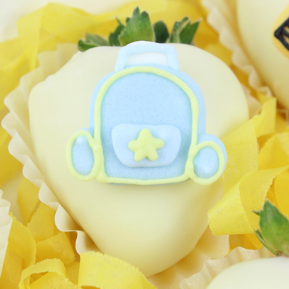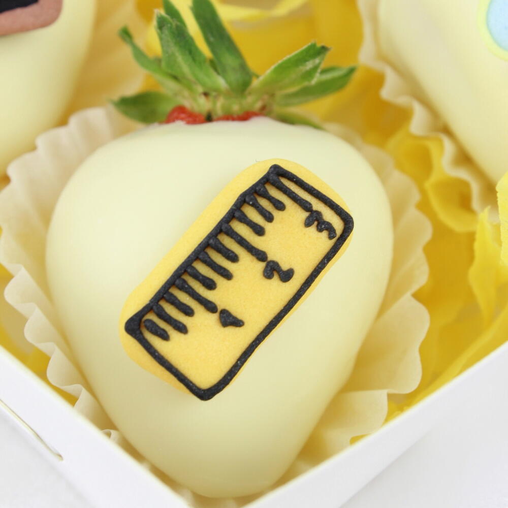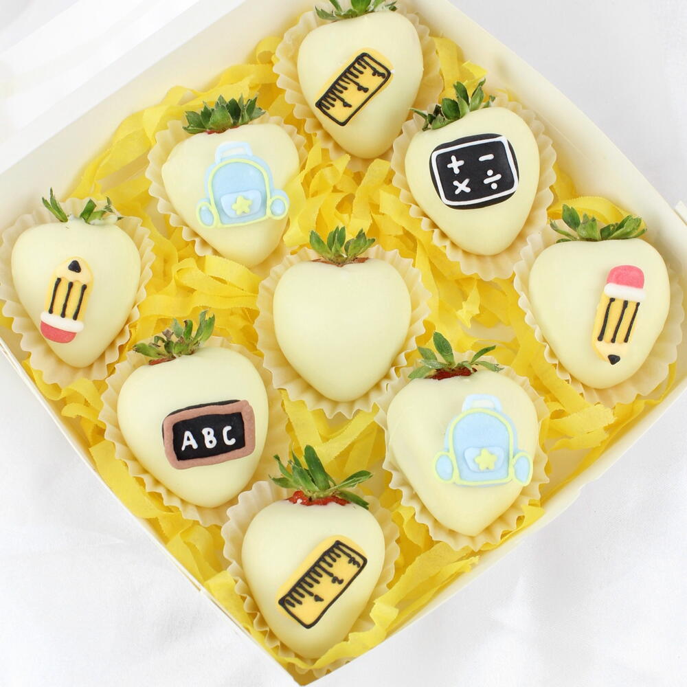 9 Fresas con chocolate blanco con azucar de la tematica escolar