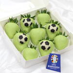 9 Fresas con chocolate con azucares de la tematica de futbol
