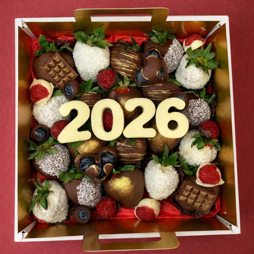 Small, elegant and straight to the heart. Berry Sweet Note Box is the 20 × 20 cm square format with about 20 chocolate-covered strawberries and premium decorations: berries, crunchy bits and color details according to the style you choose. Ideal for a romantic gift when you want the message to be clear, but the format to be more "compact". 100% customizable: you can personalize colors, chocolates, toppings and add initials, a number, a short message or symbols (hearts, etc.). Approximate number of strawberries depending on size. And, of course, everything is gluten-free.