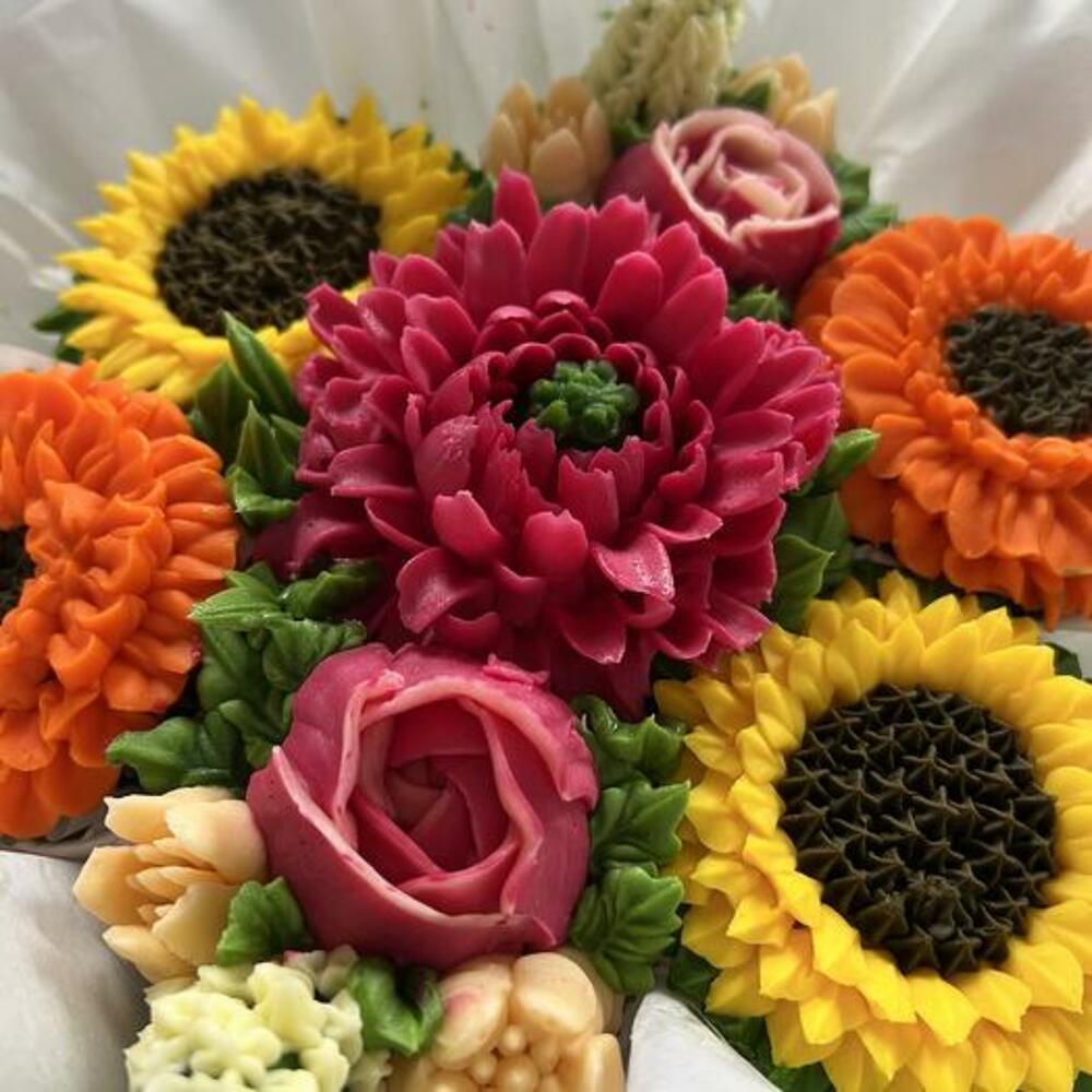 Beautiful cupcakes in flavors such as chocolate, vanilla, coconut or lemon, decorated with smooth vanilla buttercream shaped like flowers. 7 units
