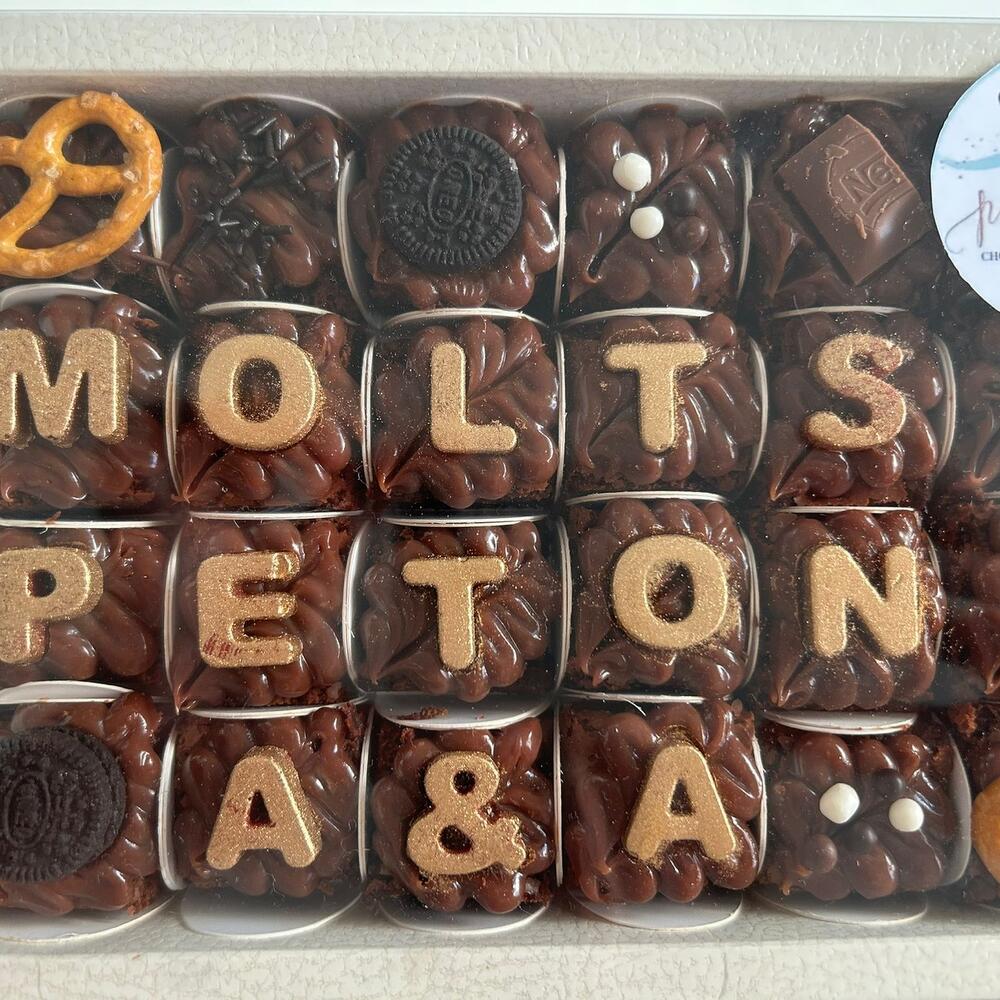 Crunchy brownie on the outside and moist and fluffy on the inside, made with the finest quality chocolate, fresh butter, eggs, pure cocoa, contains sugar, wheat flour. Does not contain nuts