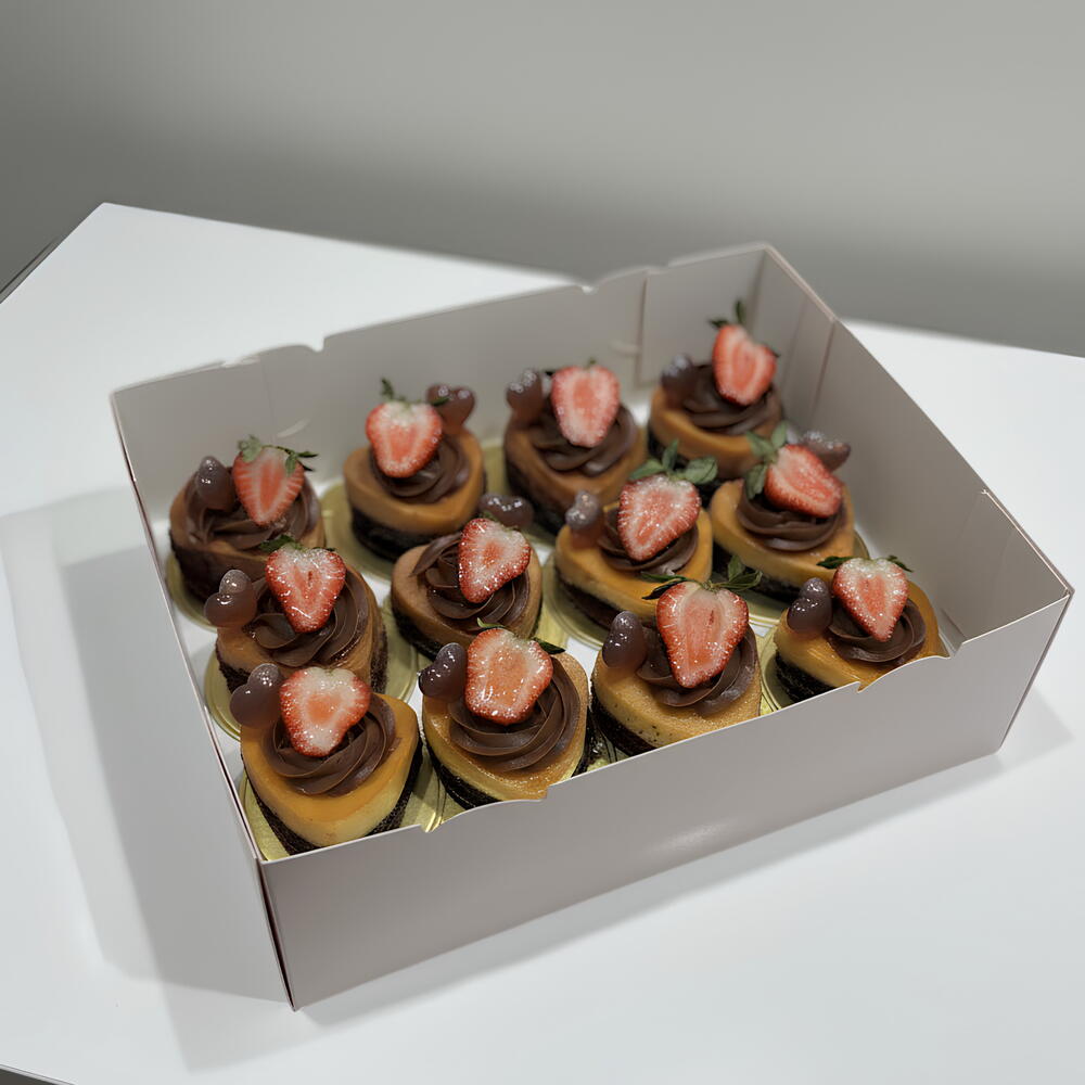 Box of 12 individual heart-shaped chocoflans