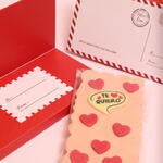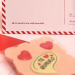 Especial caja de chocolate blanco con color rosa, corazones y te quiero de chocolate blanco
