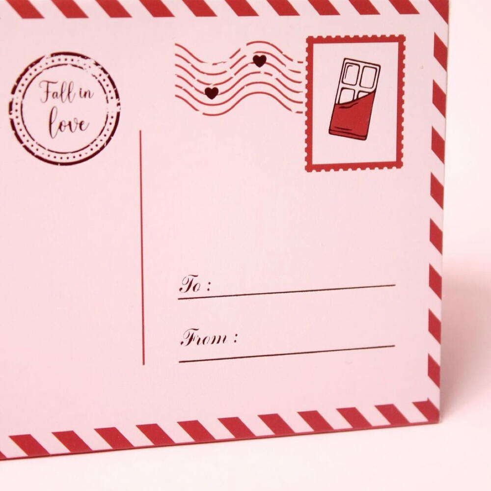 Especial caja de chocolate blanco con color rosa, corazones y te quiero de chocolate blanco