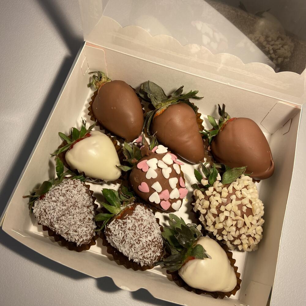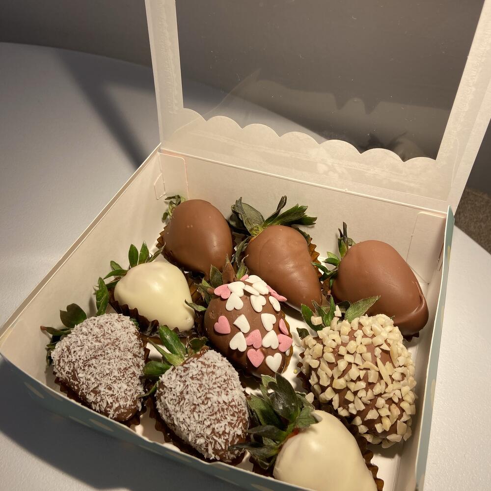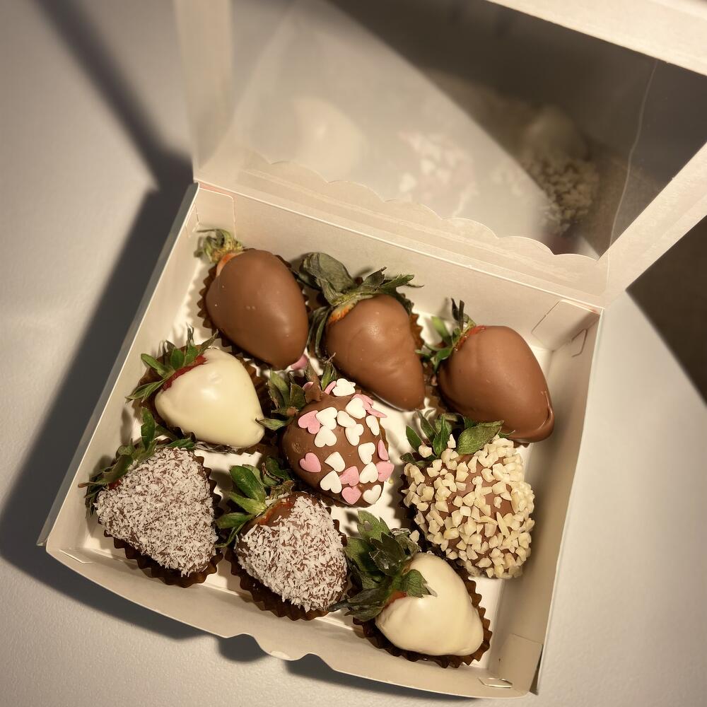 Set de fresas en chocolate belga con leche, arándanos y trozos de fresa ¡Un regalo delicioso y encantador para sorprender a alguien especial! Este set es perfecto para regalar a una mamá querida, abuela, hija, hermana, compañera de trabajo o pareja. 🎁 Un detalle que no dejará a nadie indiferente. Cada composición la preparamos con el mismo cuidado y amor, como si fuera para nuestros seres más cercanos. Ideal para cualquier ocasión especial: cumpleaños, aniversario, Día de la Madre o simplemente para endulzar el día de alguien.
