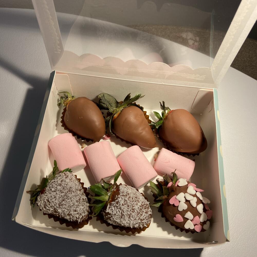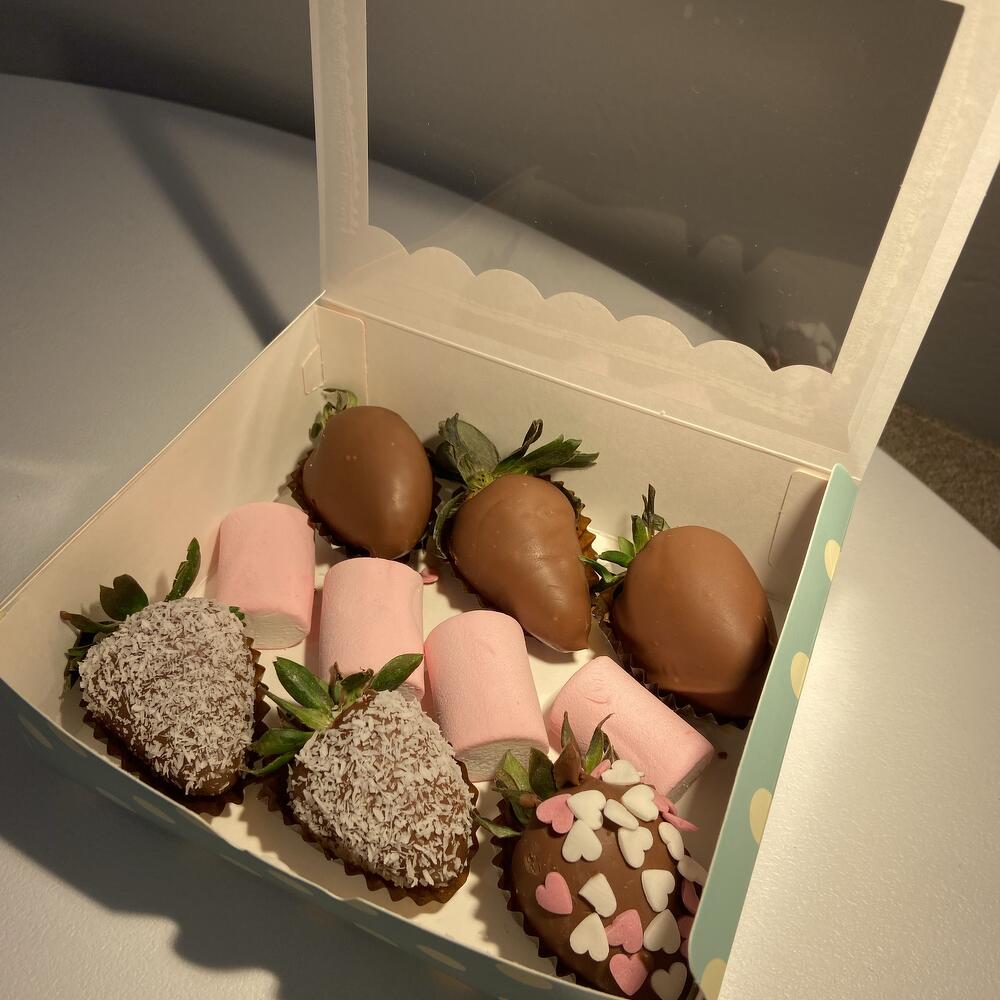 Set de fresas en chocolate belga con leche, arándanos y trozos de fresa ¡Un regalo delicioso y encantador para sorprender a alguien especial! Este set es perfecto para regalar a una mamá querida, abuela, hija, hermana, compañera de trabajo o pareja. Un detalle que no dejará a nadie indiferente. Cada composición la preparamos con el mismo cuidado y amor, como si fuera para nuestros seres más cercanos. Ideal para cualquier ocasión especial: cumpleaños, aniversario, Día de la Madre o simplemente para endulzar el día de alguien.