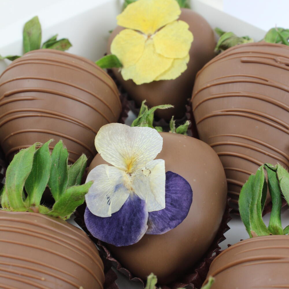 -Strawberries -Callebaut Milk Chocolate -Edible Violet