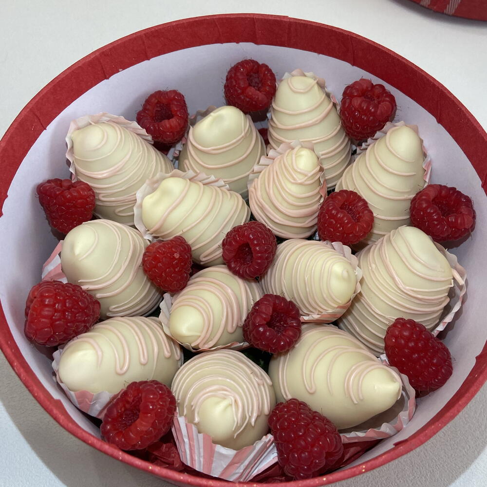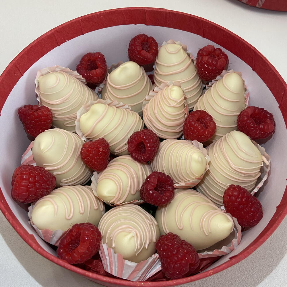Belgian chocolate, strawberry, raspberry, blueberry.