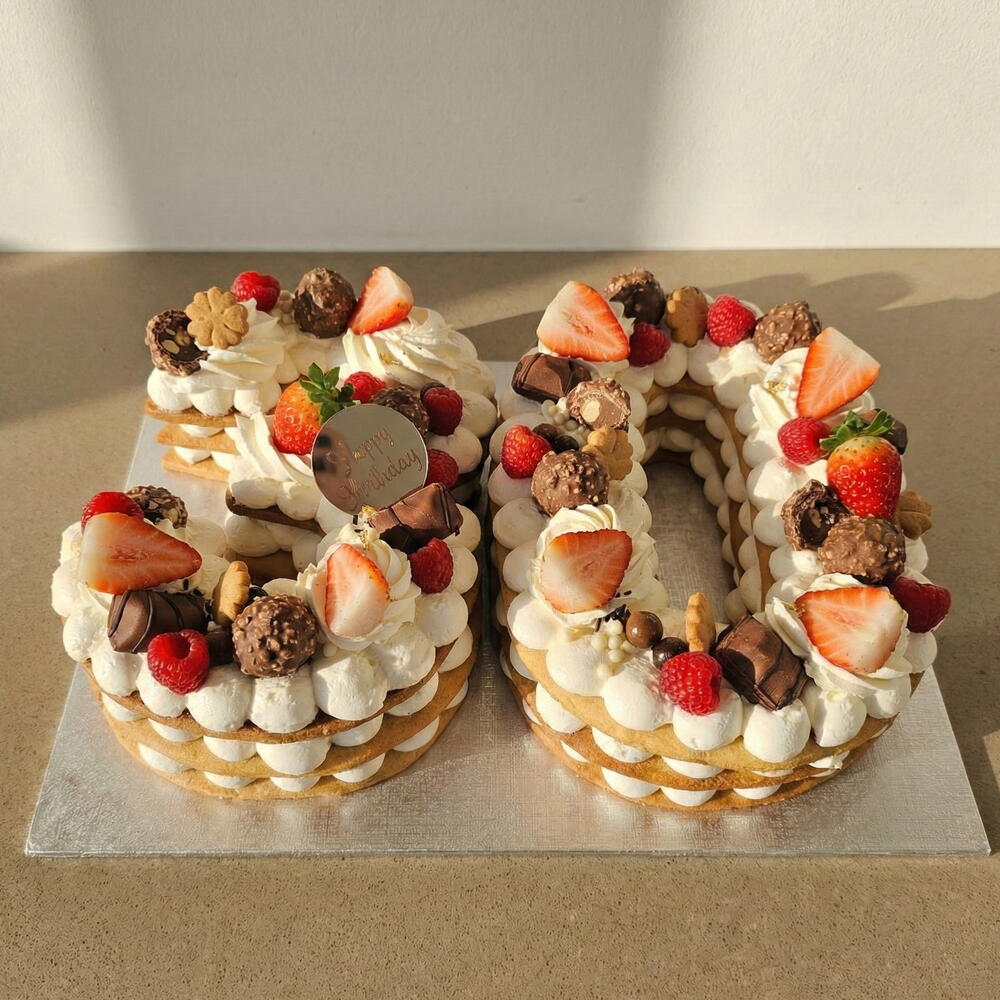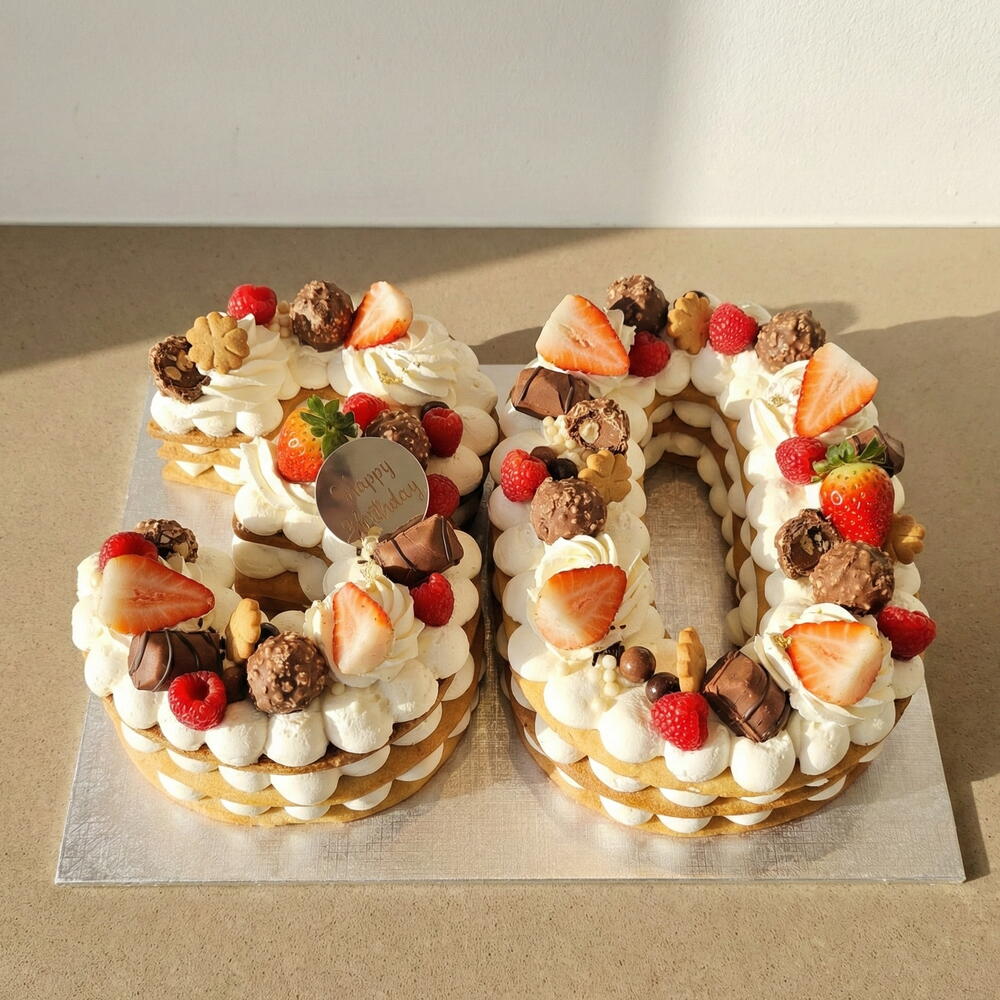 Personalized Number 30 Cake with Cream, Fruits and Chocolates – Artisanal Number Cake
