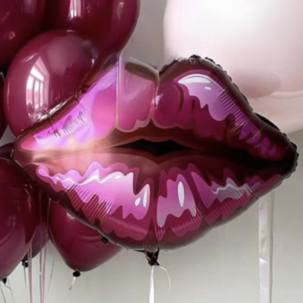 Valentine's Day Balloon Set • 1 lip-shaped balloon (70 x 66 cm) • 1 clear balloon (60 cm diameter, matte pink) • 10 double-stuffed balloons (30 cm diameter, burgundy) A romantic and voluminous arrangement, ideal for lovers, featuring a giant central clear balloon with the inscription "LOVE" and a cloud of 10 smaller balloons that create a soft, feminine, and very photogenic effect. The burgundy color adds warmth, delicacy, and a dreamy touch, perfect for any special occasion. We can also customize the inscription ("I LOVE YOU," "HAPPY BIRTHDAY," names, dates, etc.). Balloons that give magical emotions! Ideal Occasions February 14th / Valentine's Day. Birthdays, especially for her or romantic couples. Anniversaries, proposals, or just because.