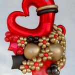 Red foil heart-shaped balloon - 1 unit Gold latex balloons - 6 units Black latex balloons - 4 units Red latex balloons - 5 units Small latex balloons for decoration (red, gold and black) - 10 units Floral design made with balloons in gold, red and black - 8 flowers