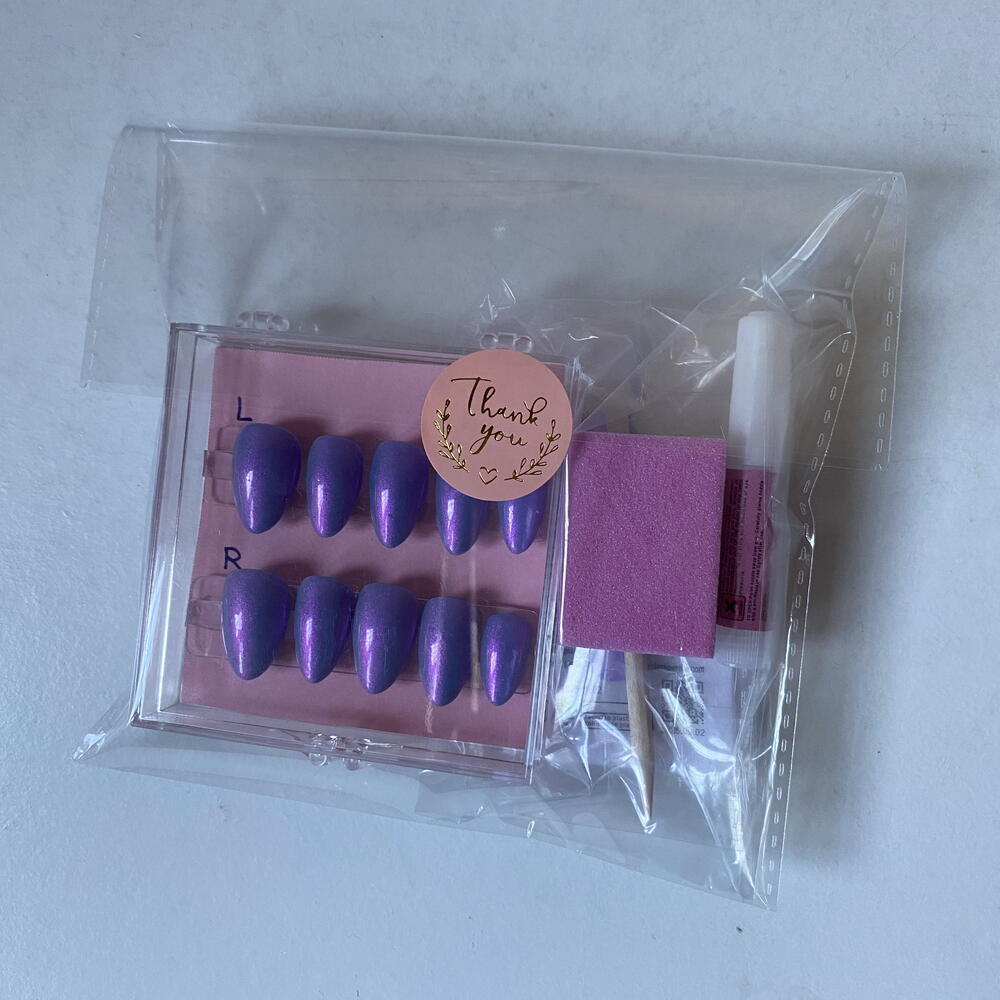 Set of personalized and hand-designed nails, with everything needed to apply them and prepare the natural nail (glue, stickers, files, orange stick and cellulose) For her.