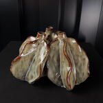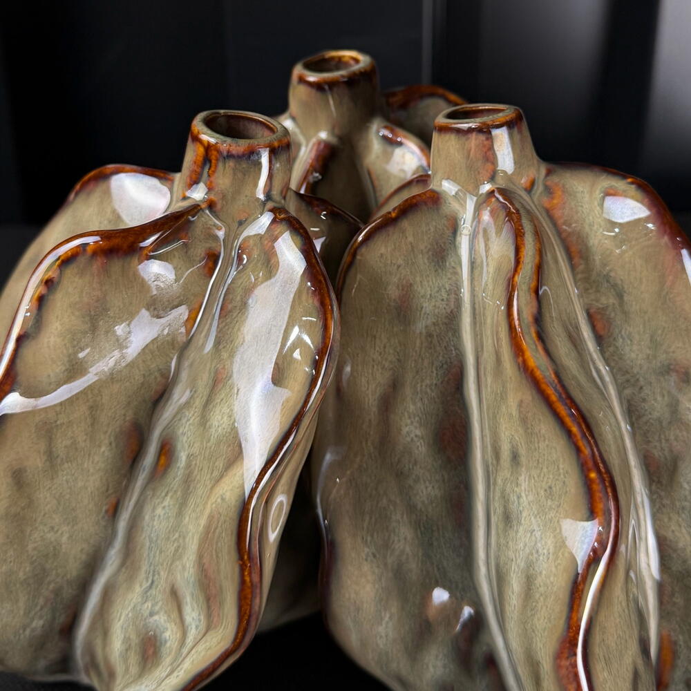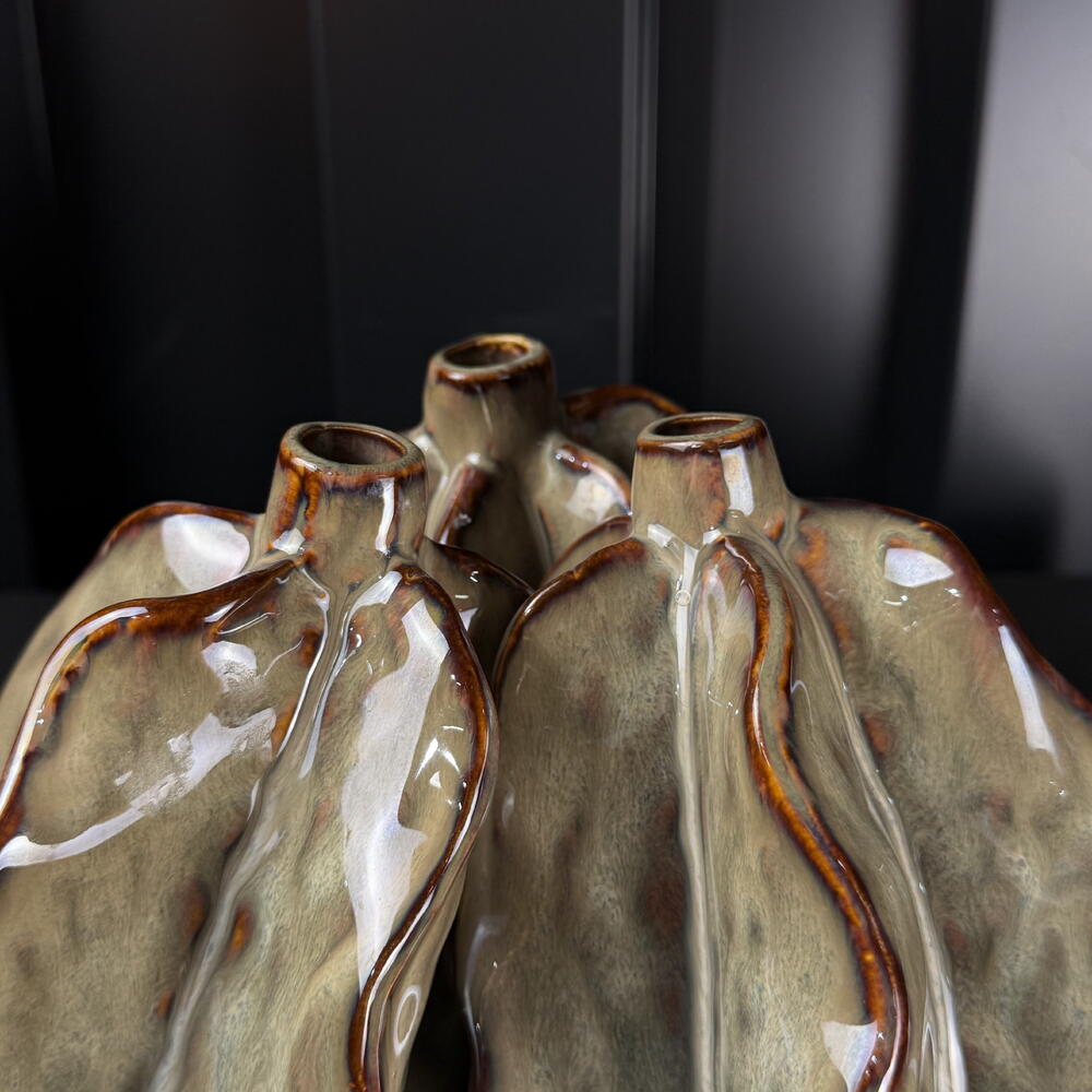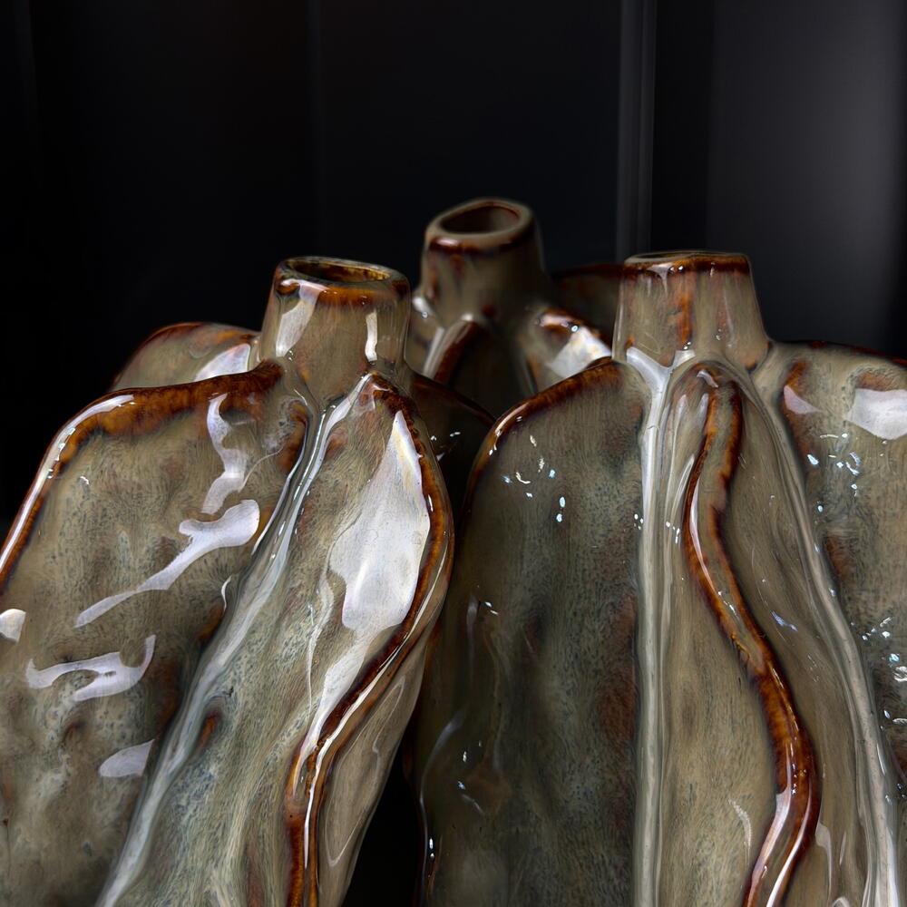 Ceramic 3pods vase gray-brown