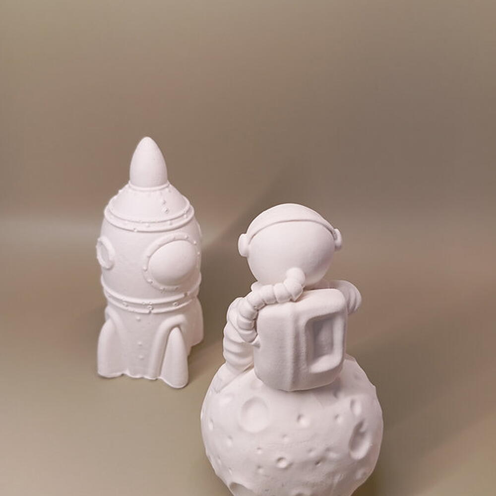 Set of decorative figures. Ideal for any corner of the house. Total weight: 230g Measurements: Astronaut- Diameter 4.5cm/ Height 8cm Rocket- Diameter 3.5cm / Height 9cm