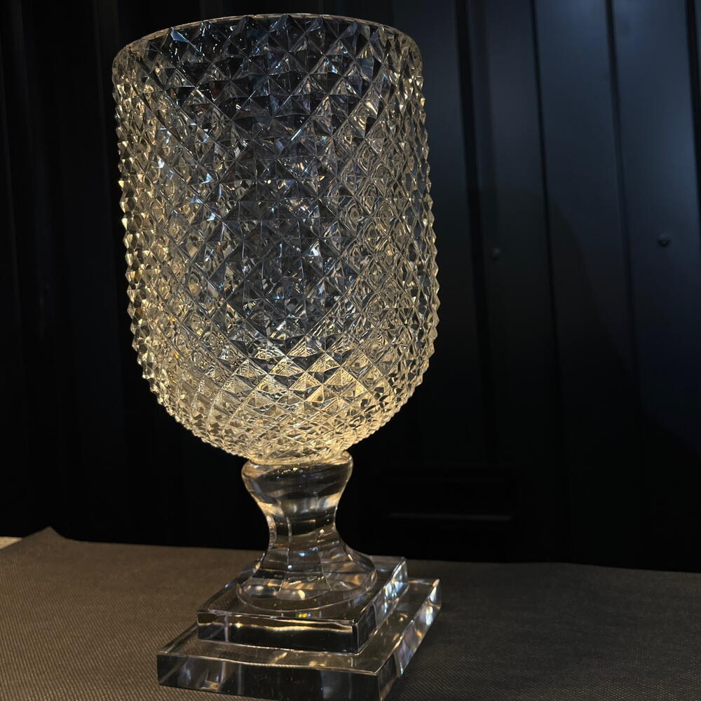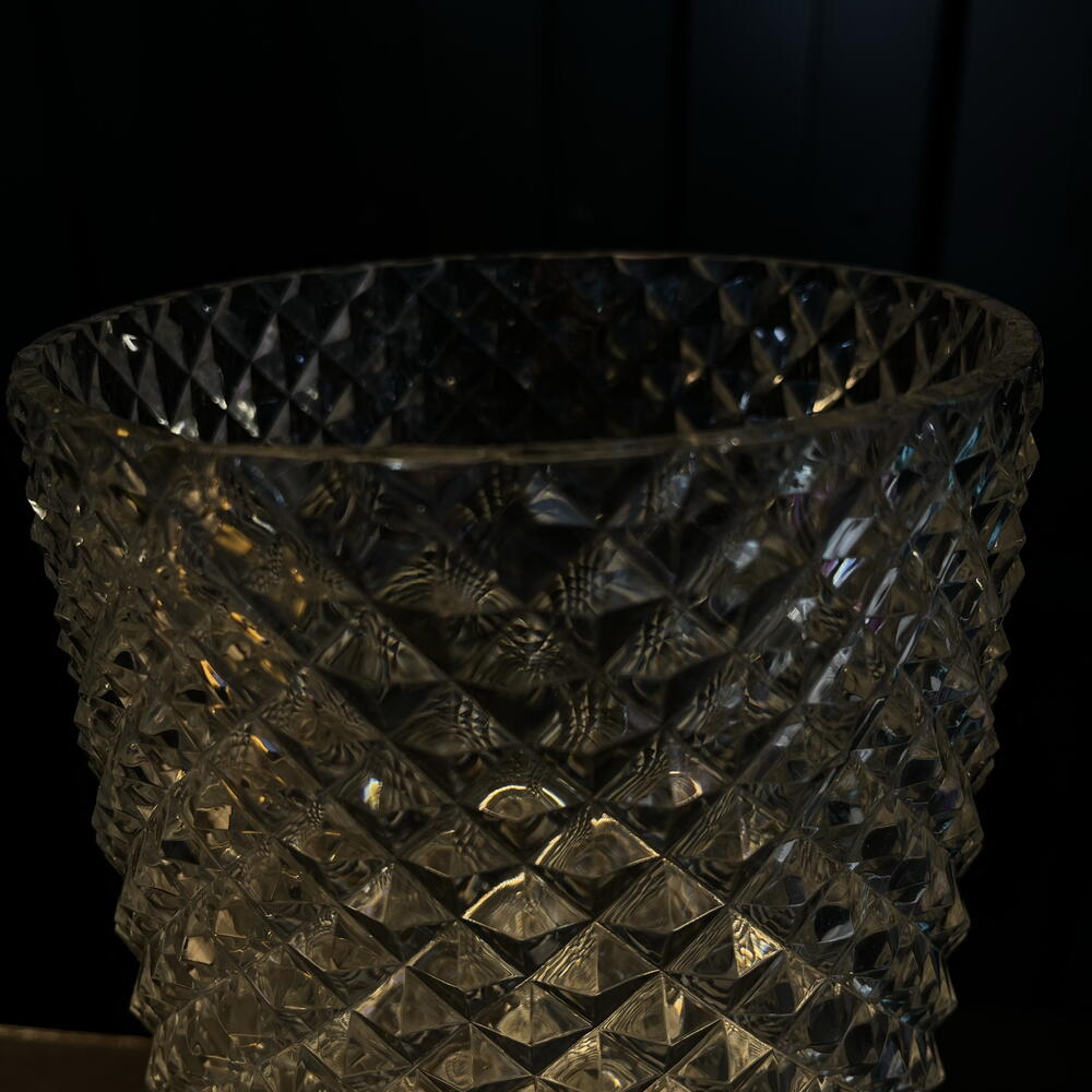 Transparent crystal vase with diamond cut