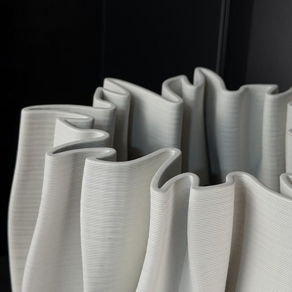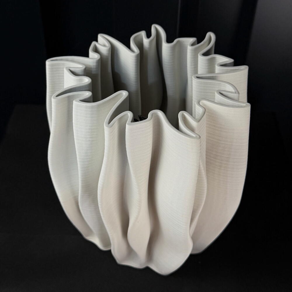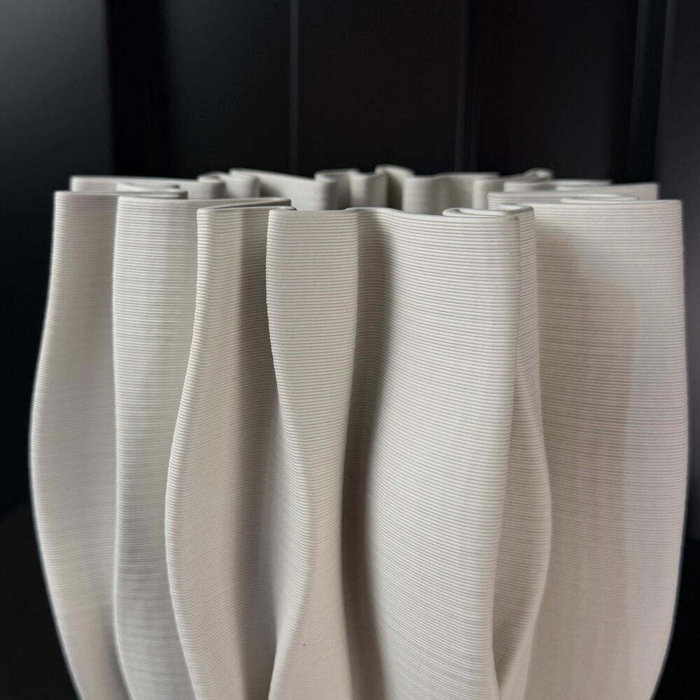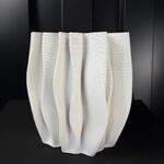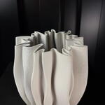 Wide pleated cream ceramic vase