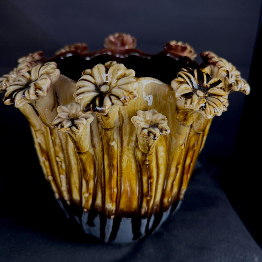cream brown ceramic flower pot