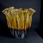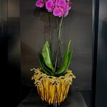 Handcrafted vase with a sculpted relief design and an aged golden finish. Each floral detail at the top adds texture and a unique style, making it a striking and elegant decorative piece. Ideal for premium bouquets or as a standalone decorative element in modern, sophisticated spaces.