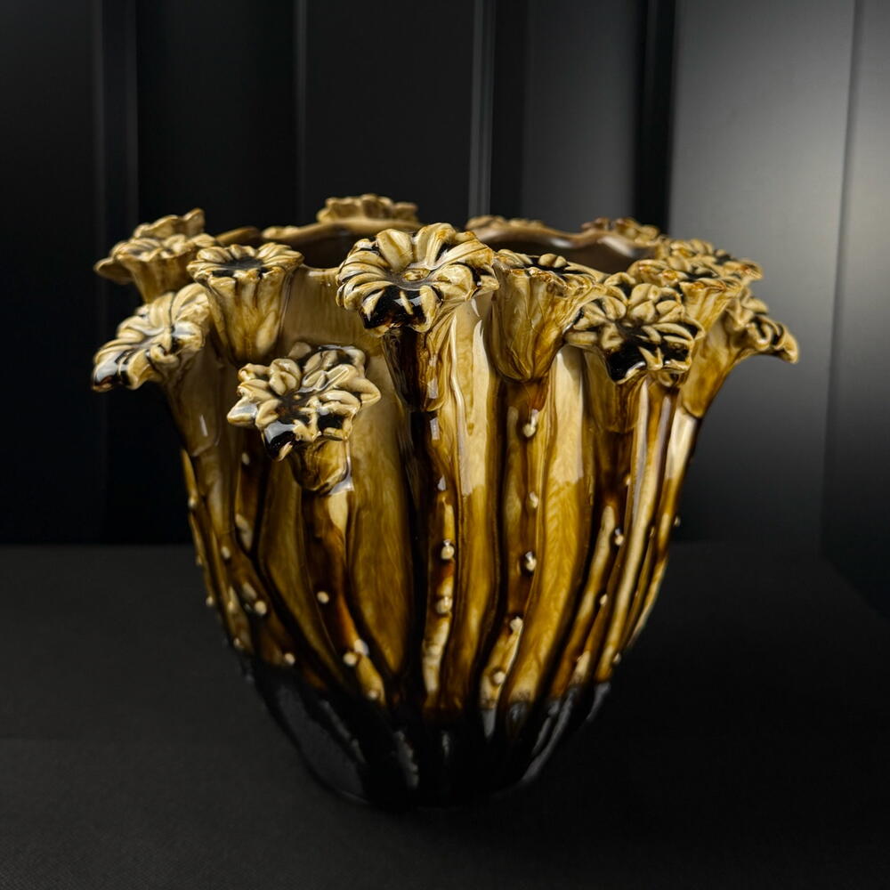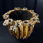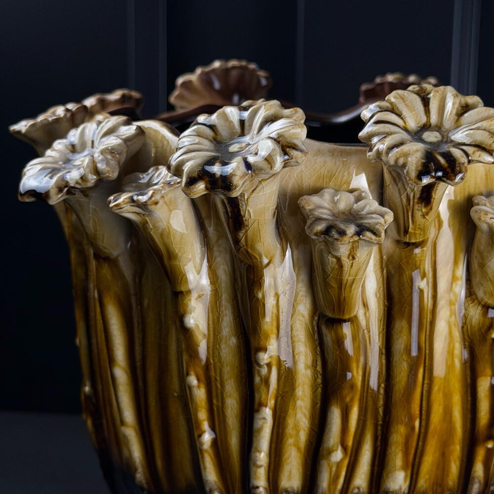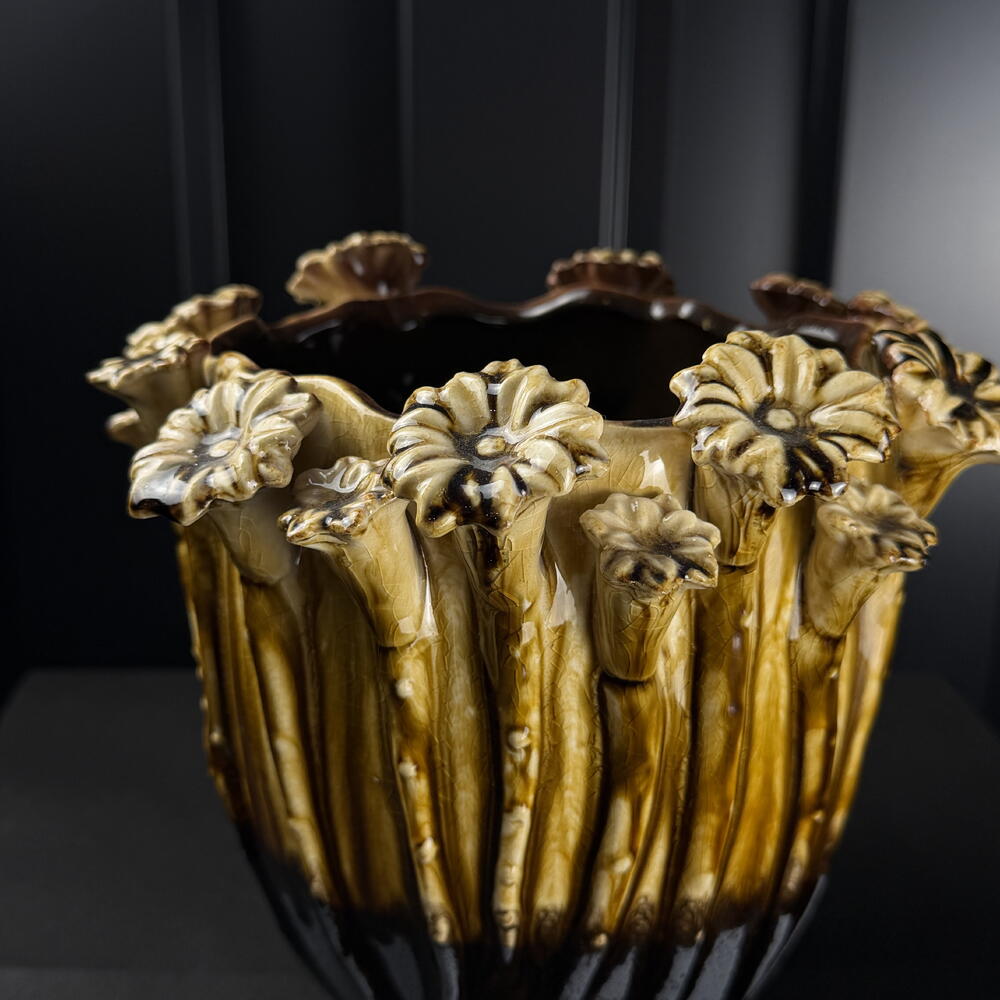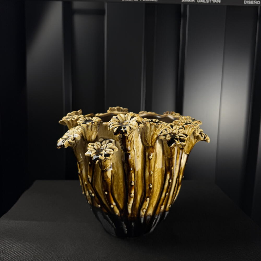 ceramic pot d20 attached flowers cream-brown by ARAIK GALSTYAN