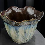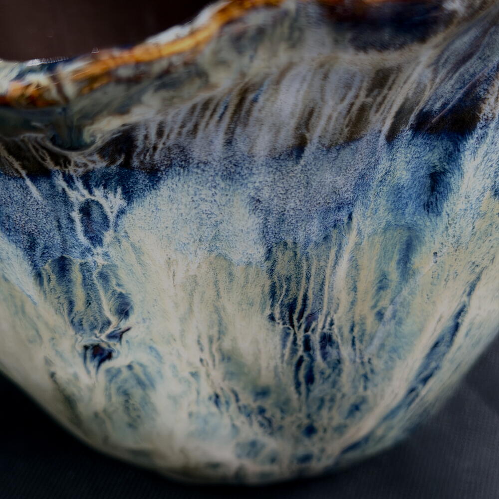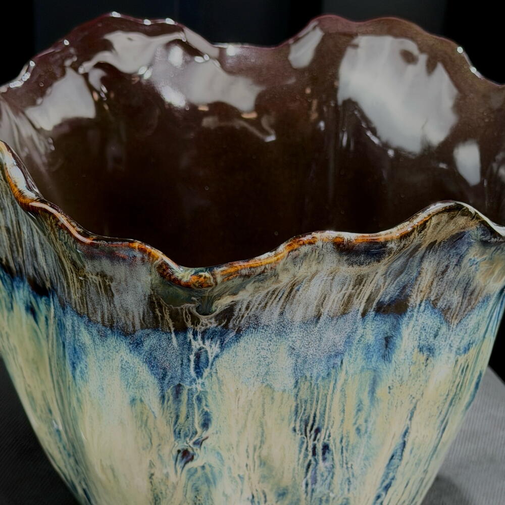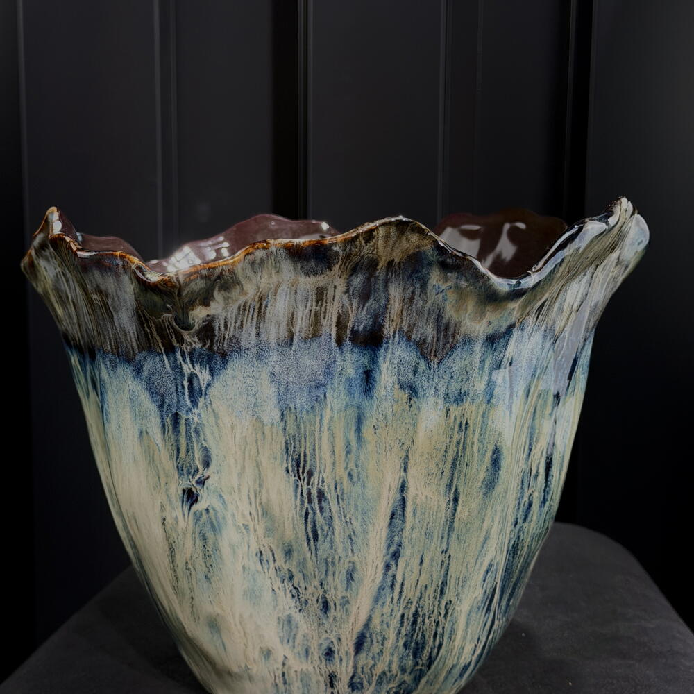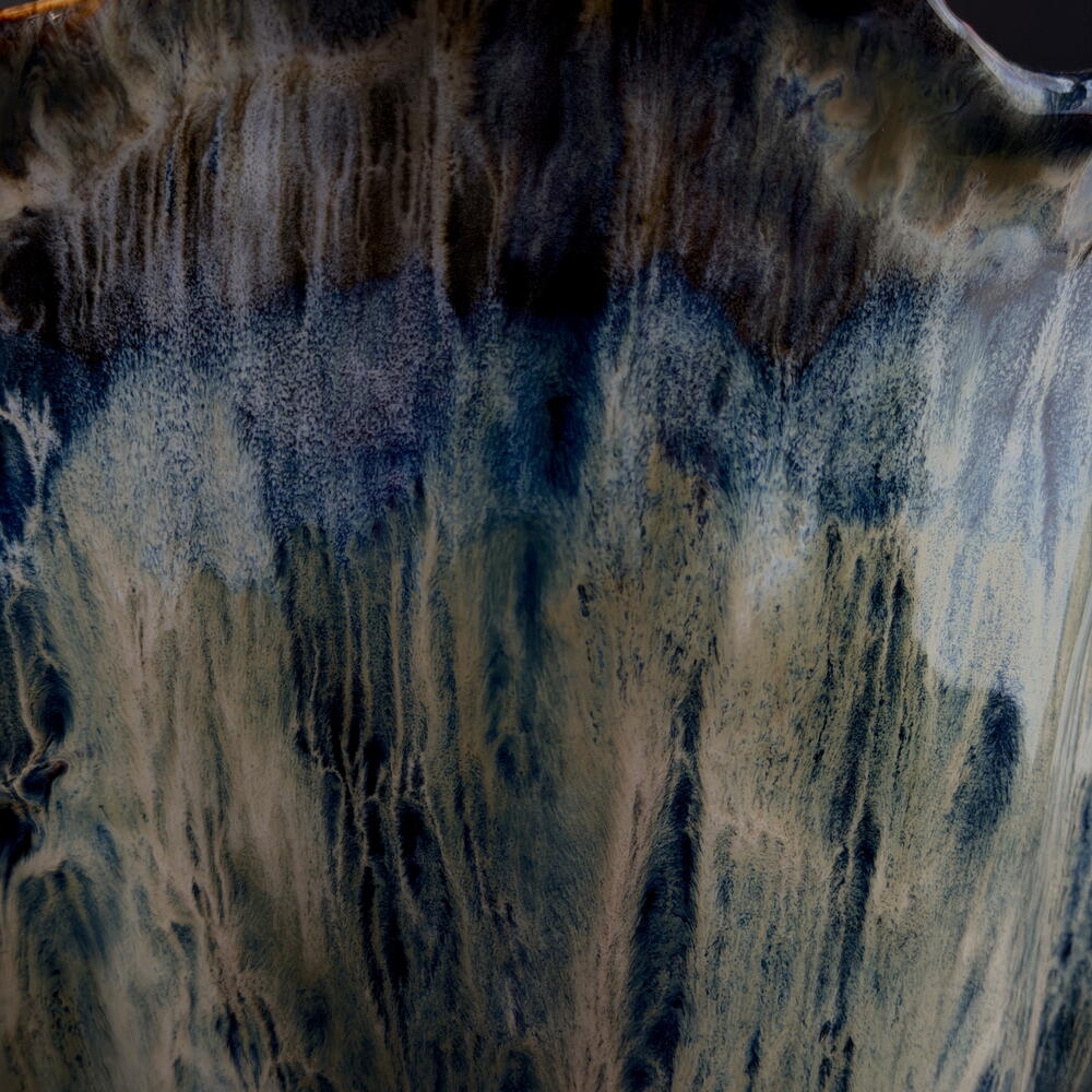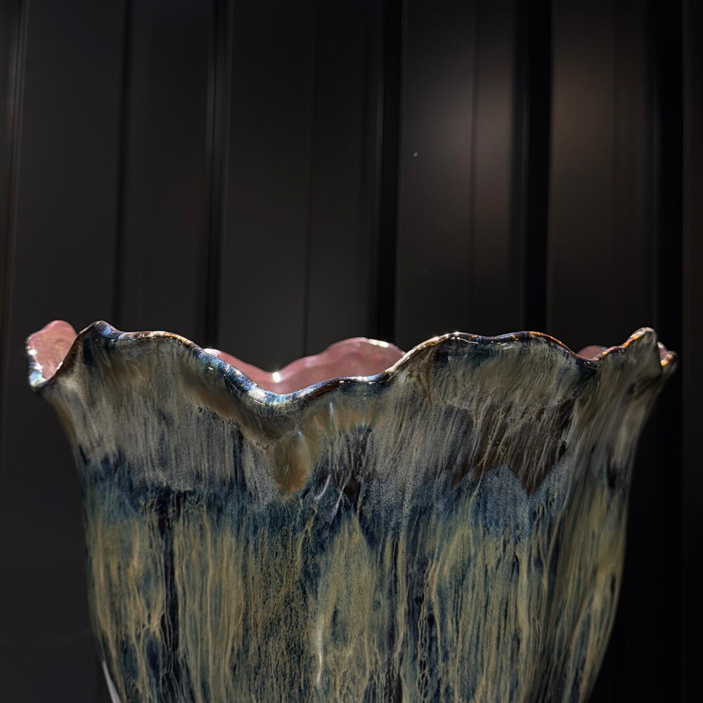Vaso cerámico alto con efecto “lava” en tonos marrón y verde. Diseño artístico y moderno que aporta elegancia a cualquier interior y resalta las composiciones florales. a.251