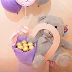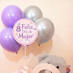 Ferrero rocher - 8 pcs peluche - 1 pcs globos - 4 pcs heart-shaped cardboard box - 1 pcs Women's Day decoration - 1 pcs