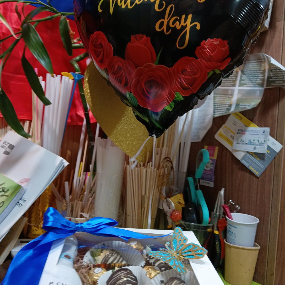 Ferrero rocher - 6 pcs cinta de raso - 1 pcs caja - 1 pcs cava ice or rose - 1 pcs fresas con chocolate - 6 pcs 18-inch helium balloon - 1 pcs