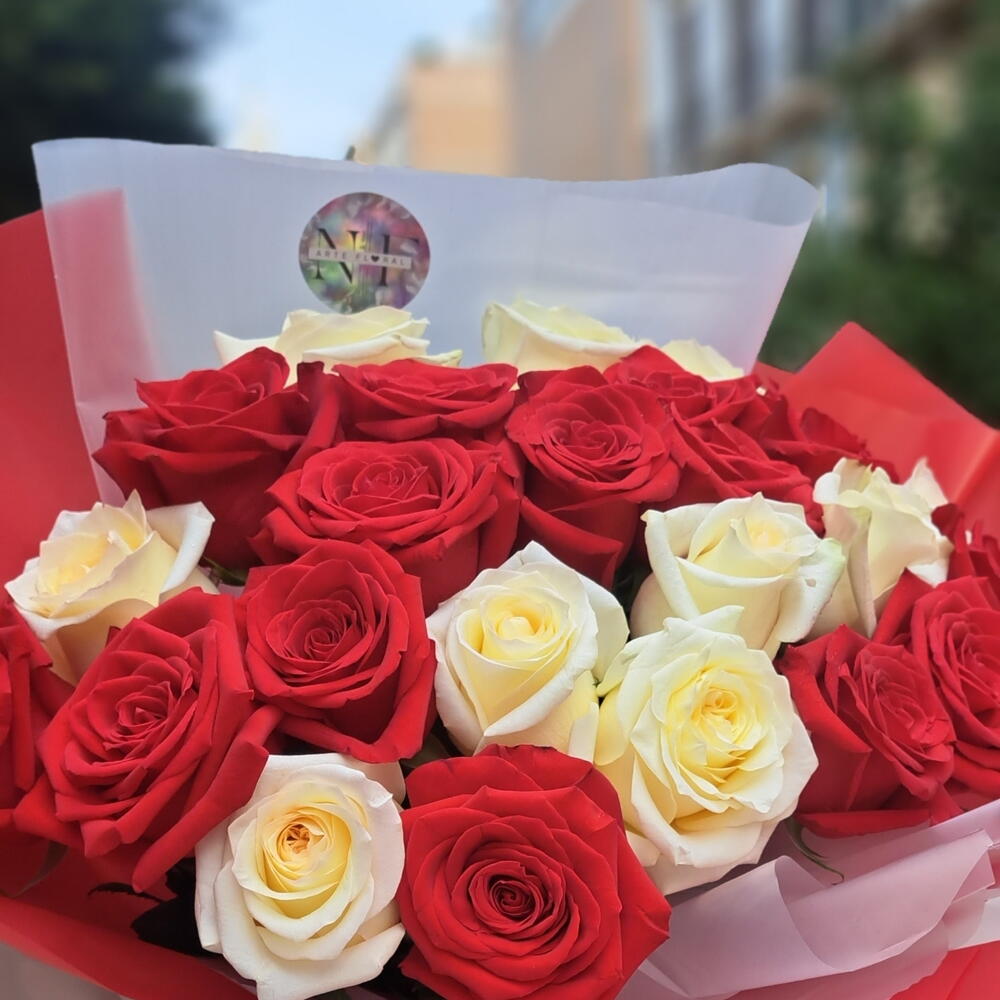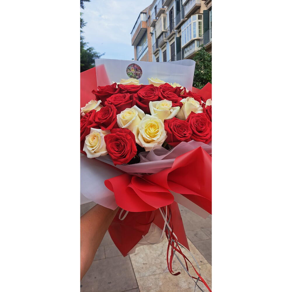 rosas rojas - 15 pcs rosas blancas - 10 pcs