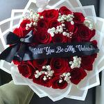 Sorprende a esa persona especial con este romántico ramo de 35 rosas rojas con mensaje personalizado, adornado con delicada paniculata blanca y presentado en elegante papel coreano blanco. Ideal para San Valentín, aniversarios o propuestas románticas, este ramo cuenta con una cinta negra personalizable que puede llevar el mensaje que desees. Un detalle elegante y con mucho significado. Recomendaciones de cuidado: Para prolongar la frescura del ramo, retira el papel decorativo y corta los tallos en diagonal antes de colocarlas en agua limpia. Cambia el agua cada dos días y mantén las flores alejadas de la luz solar directa y de corrientes de aire. Así disfrutarás de la belleza de tus rosas por más tiempo.