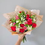 Let the Floral Joy bouquet brighten your day. This vibrant arrangement combines roses of all colors with delicate alstroemerias, creating an explosion of freshness and happiness. Perfect for any occasion, be it a birthday, a thank-you, or just to brighten up your home. Give smiles and heartfelt emotions with this beautiful bouquet that celebrates the beauty of life. Place your order now and bring joy to your loved ones!