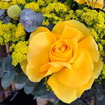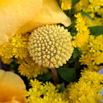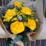 Solidago - 5 pcs craspedia - 3 pcs eucalipto cinerea - 3 pcs blue limonium - 3 pcs yellow French roses - 5 pcs
