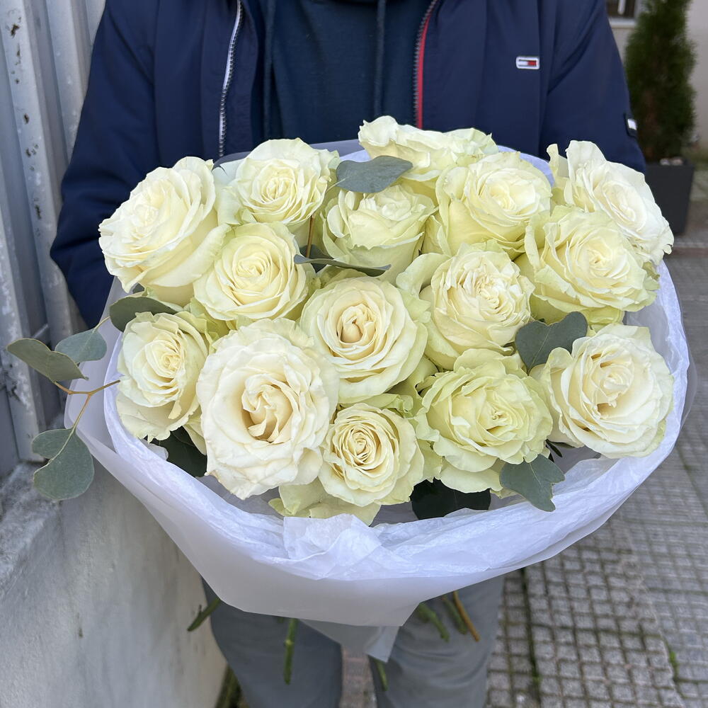 Eucalyptus - 1 pcs white roses - 15 pcs