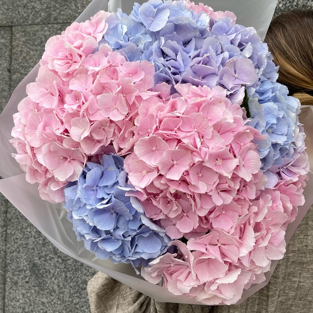 Ribbon - 2 pcs packaging - 2 pcs hortensia mix - 11 pcs